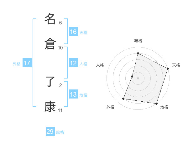 名倉 了康さんの総格は29画の4点!