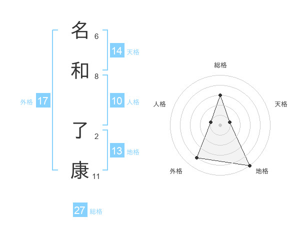 名和 了康さんの総格は27画の3点!