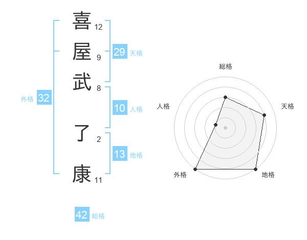 喜屋武 了康さんを姓名の画数から五運を鑑定