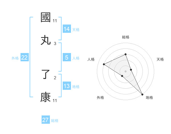 國丸 了康さんの総格は27画の3点!
