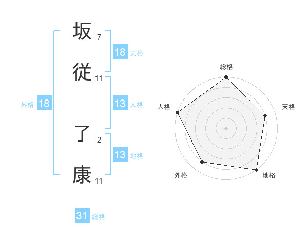 坂従 了康さんの地格は13画の5点!