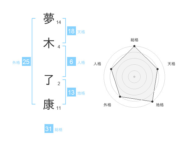 夢木 了康さんの総格は31画の5点!