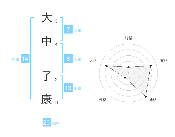 大中 了康さんの総格は20画の1点!