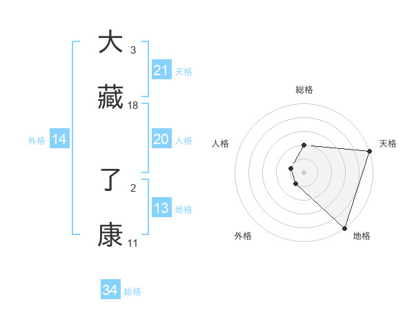 大藏 了康さんの天格は21画の5点!