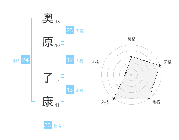 奥原 了康さんの天格は23画の5点!