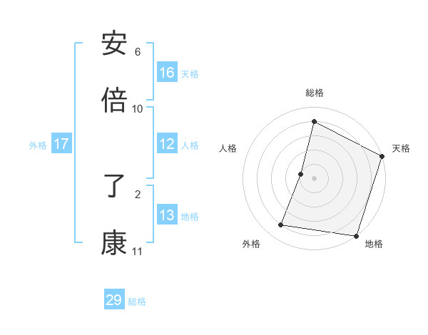 安倍 了康さんの天格は16画の5点!
