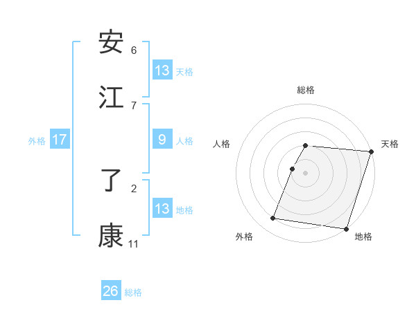 安江 了康さんの天格は13画の5点!