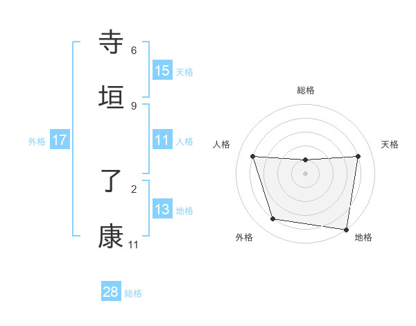 寺垣 了康さんを姓名の画数から五運を鑑定