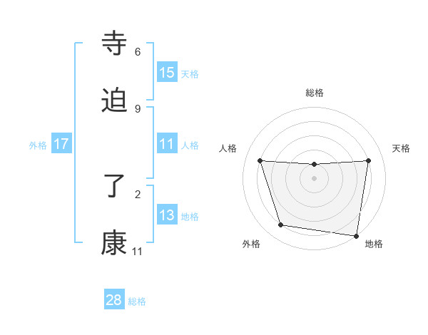 寺迫 了康さんの天格は15画の4点!