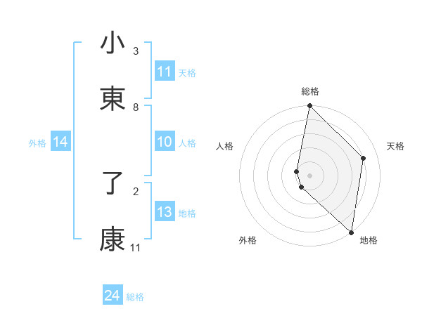 小東 了康さんの天格は11画の4点!