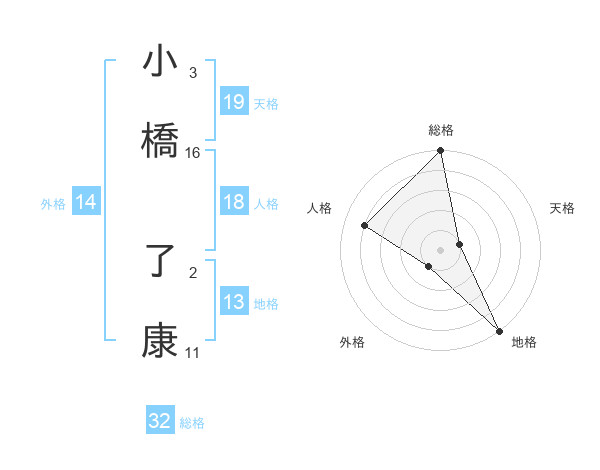 小橋 了康さんの総格は32画の5点!