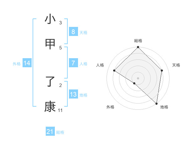 小甲 了康さんの総格は21画の5点!