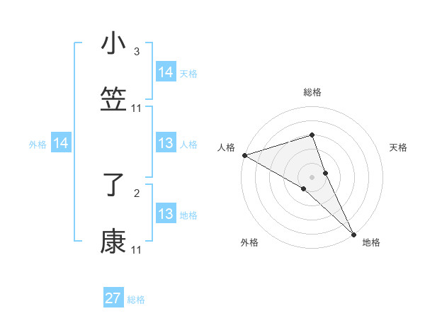 小笠 了康さんの総格は27画の3点!