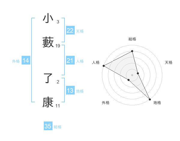 小藪 了康さんの天格は22画の1点!