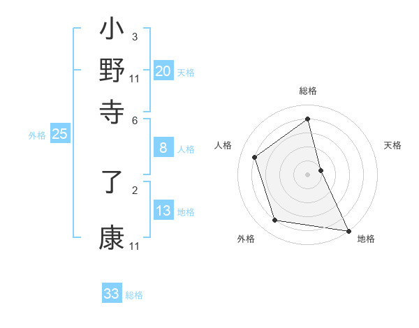 小野寺 了康さんを姓名の画数から五運を鑑定