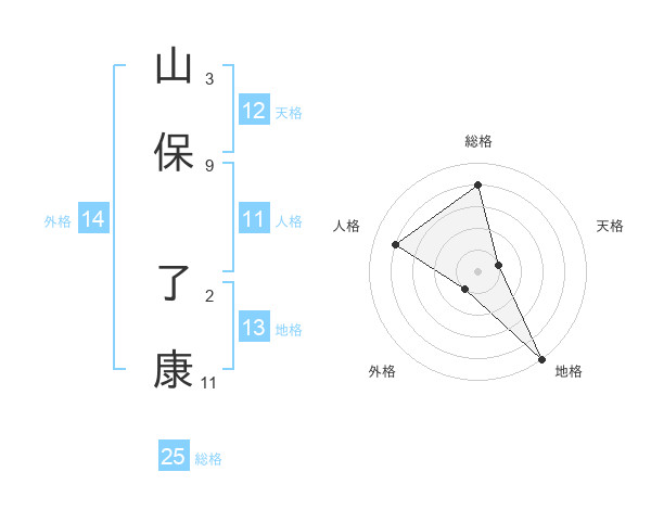 山保 了康さんの総格は25画の4点!