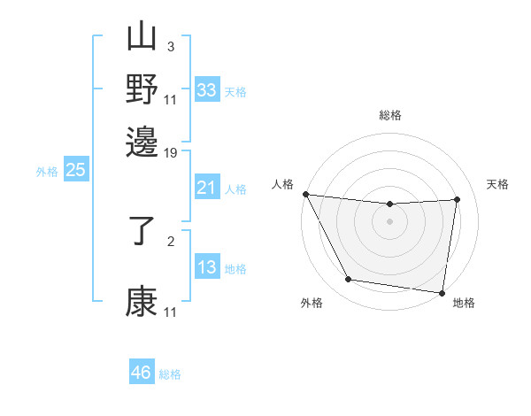 山野邊 了康さんの天格は33画の4点!