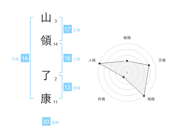山領 了康さんの天格は17画の4点!