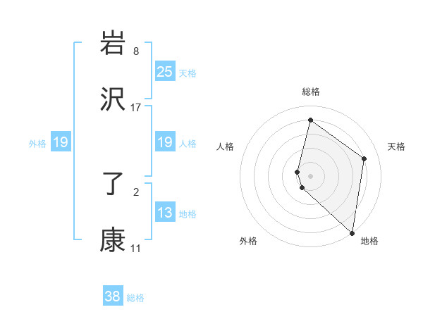 岩沢 了康さんの総格は38画の4点!