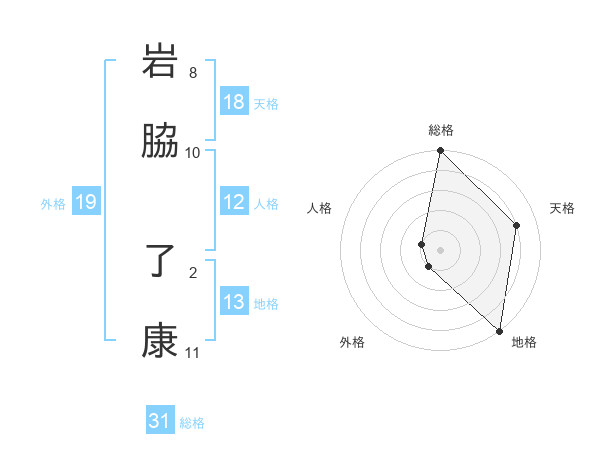 岩脇 了康さんの総格は31画の5点!
