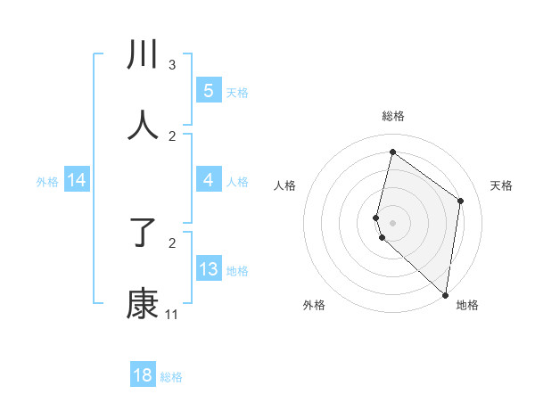 川人 了康さんの総格は18画の4点!