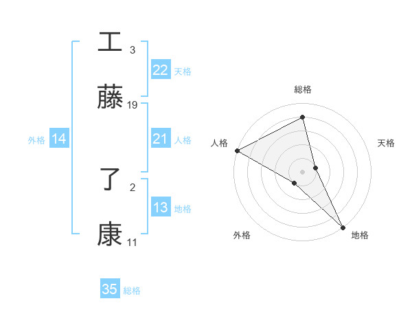 工藤 了康さんの総格は35画の4点!