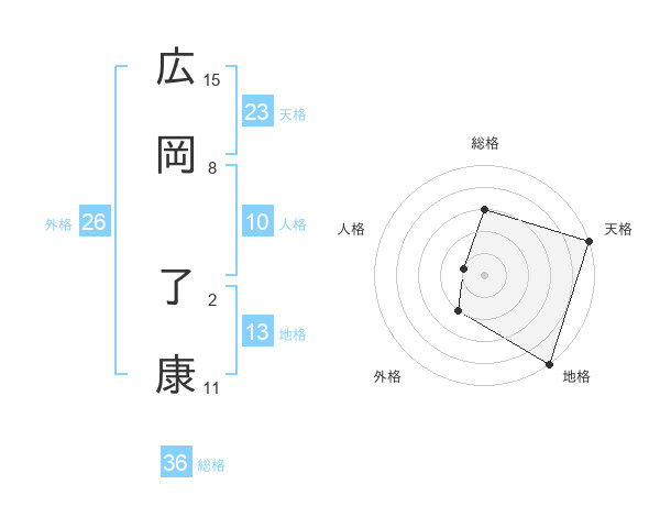 広岡 了康さんの天格は23画の5点!