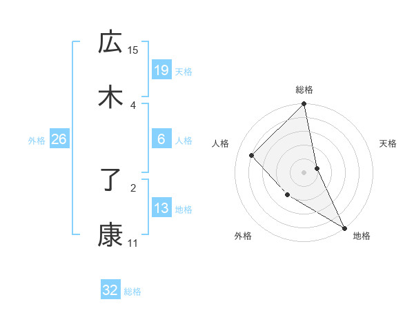 広木 了康さんの総格は32画の5点!