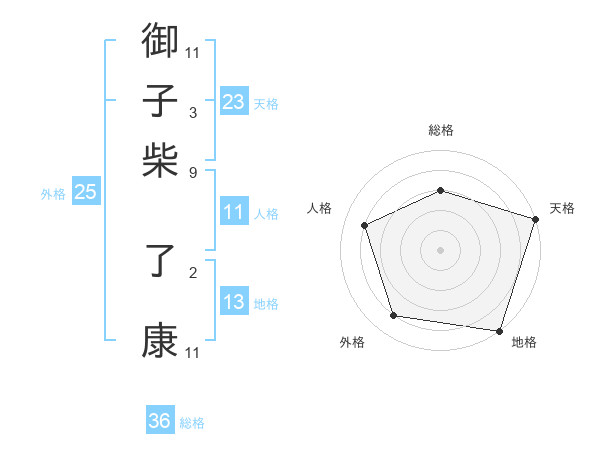 御子柴 了康さんの天格は23画の5点!