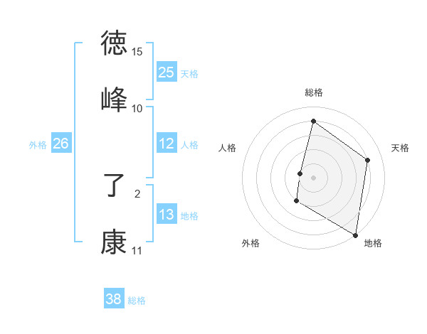 徳峰 了康さんの総格は38画の4点!
