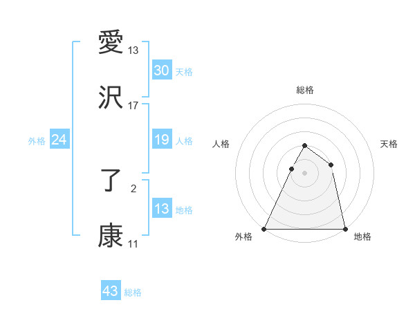 愛沢 了康さんの総格は43画の2点!