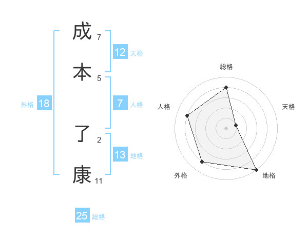 成本 了康さんの総格は25画の4点!
