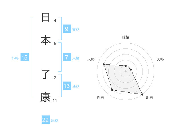日本 了康さんの総格は22画の1点!