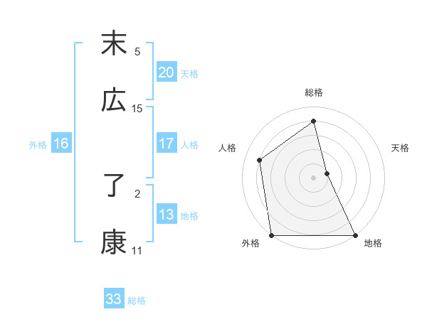 末広 了康さんを姓名の画数から五運を鑑定