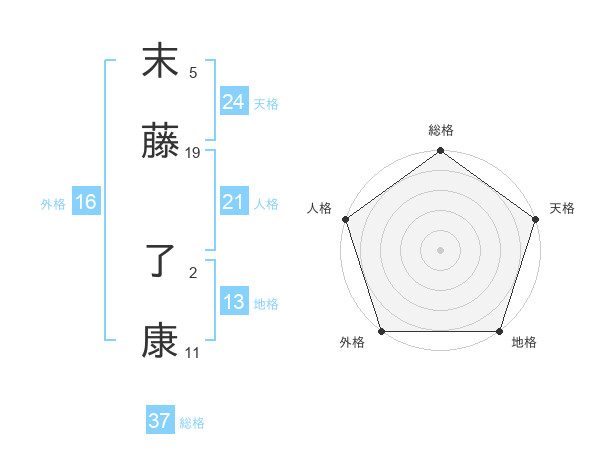末藤 了康さんの総格は37画の5点!