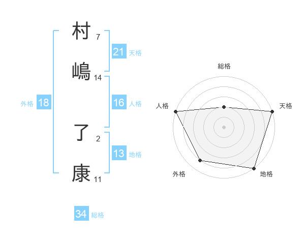 村嶋 了康さんを姓名の画数から五運を鑑定
