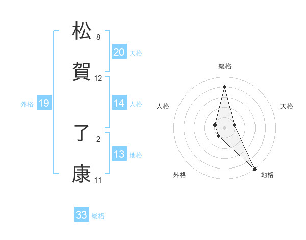 松賀 了康さんの総格は33画の4点!