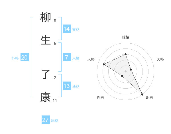 柳生 了康さんの総格は27画の3点!