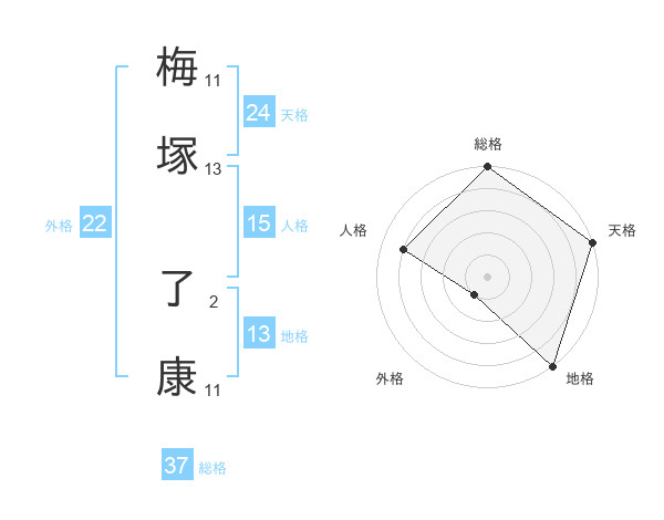 梅塚 了康さんの総格は37画の5点!