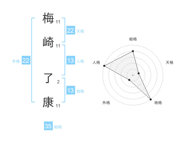梅崎 了康さんの総格は35画の4点!