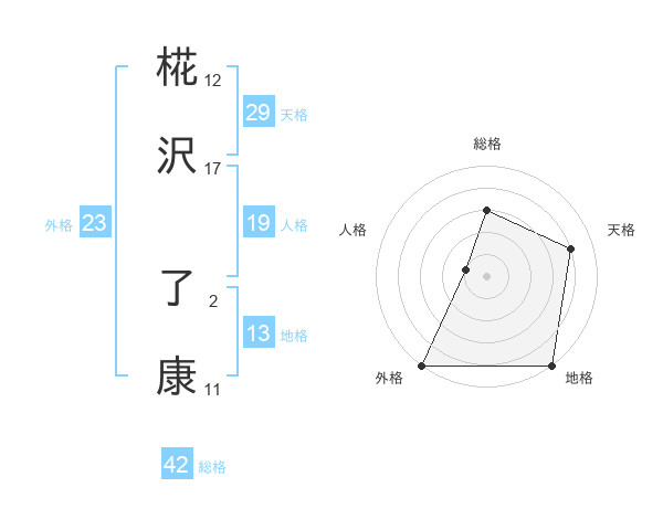 椛沢 了康さんの天格は29画の4点!