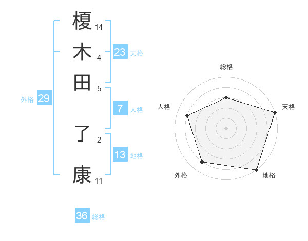 榎木田 了康さんを姓名の画数から五運を鑑定