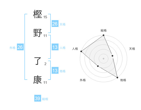 樫野 了康さんの総格は39画の5点!