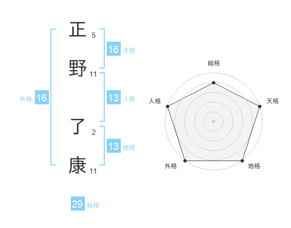 正野 了康さんの地格は13画の5点!