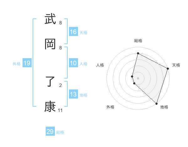 武岡 了康さんの総格は29画の4点!