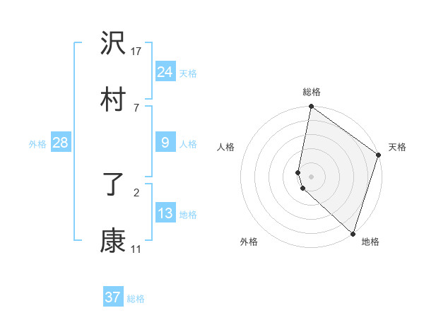 沢村 了康さんの総格は37画の5点!