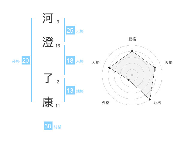 河澄 了康さんの総格は38画の4点!