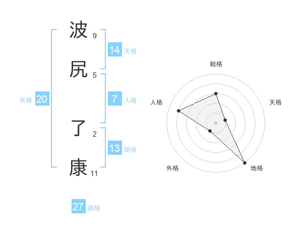波尻 了康さんの総格は27画の3点!