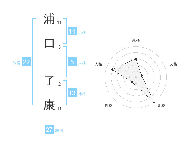 浦口 了康さんの総格は27画の3点!