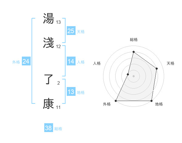 湯淺 了康さんを姓名の画数から五運を鑑定
